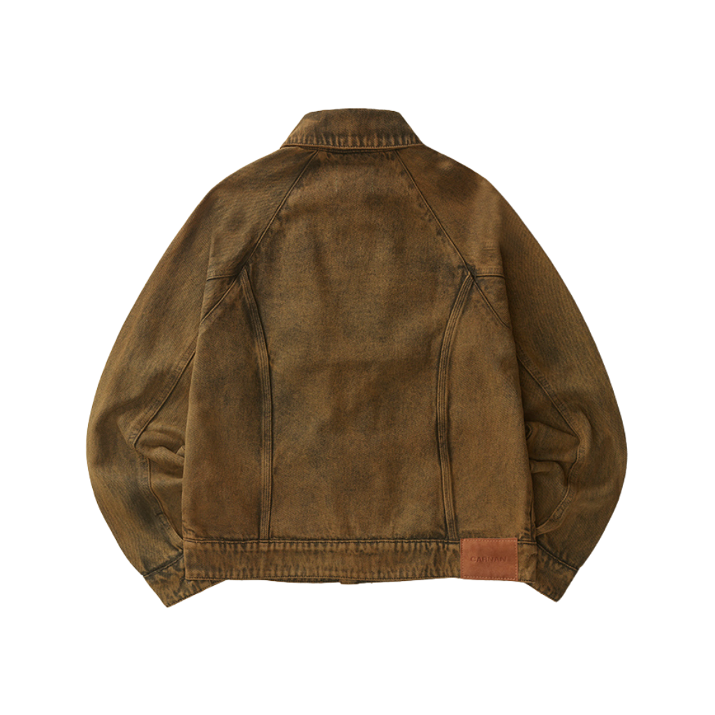 - Jaqueta tingida em sarja com abotoamento e bolsos frontais.
