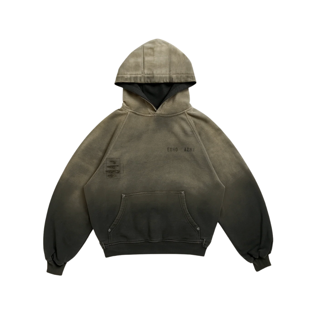 O UNF HOODIE BELUGA É CONFECCIONADO EM MALHA 100% ALGODÃO DE 440GSM, OFERECENDO ESTRUTURA E DURABILIDADE. TRAZ MODELAGEM RAGLAN BOXY, CAPUZ DUPLO ESTRUTURADO E BOLSO CANGURU REFORÇADO COM REBITES METÁLICOS. O TINGIMENTO MANUAL EM DÉGRADÉ GARANTE QUE CADA PEÇA SEJA ÚNICA, ENQUANTO OS REMENDOS PROPOSITAIS APLICADOS NA FRENTE E NAS COSTAS REFORÇAM A ESTÉTICA UTILITÁRIA. INTEGRANTE DA LINHA DE UNIFORMES DA EGHO ARMY, FOI DESENVOLVIDO PARA O USO COTIDIANO, UNINDO FUNCIONALIDADE E IDENTIDADE VISUAL.