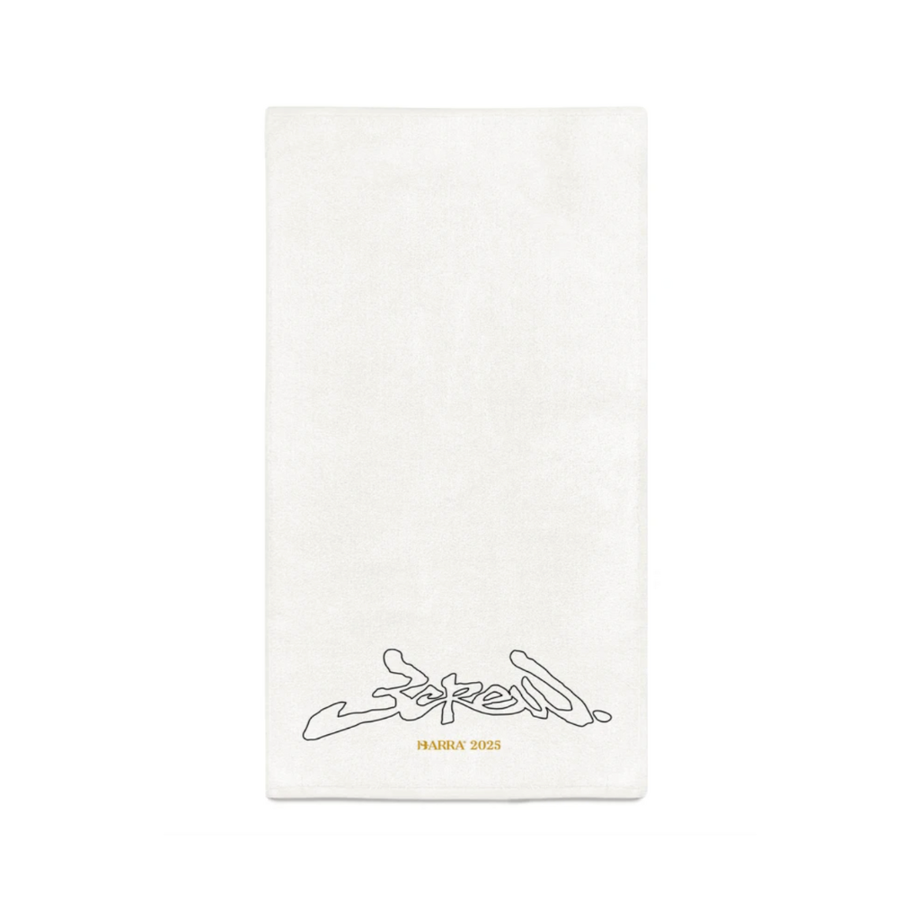 Toalha de praia com gráfico em bordado do ícone “Assinatura”.